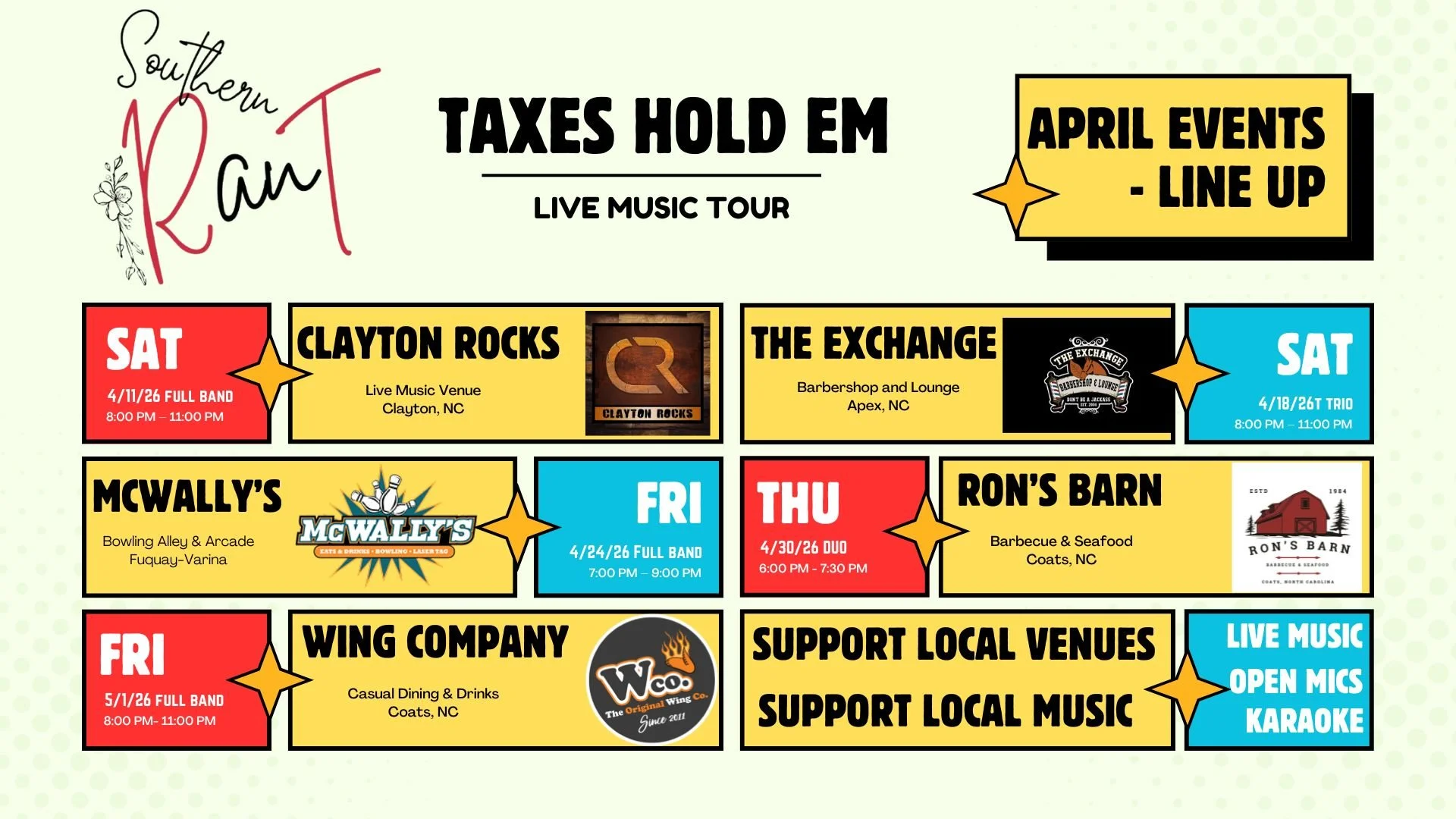 Stay tuned for upcoming shows and ways to get involved.